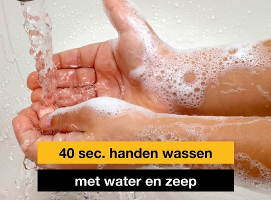 Was meerdere keren per dag je handen met water en zeep, droog ze af met papieren doekjes of een droger, niet met een handdoek.