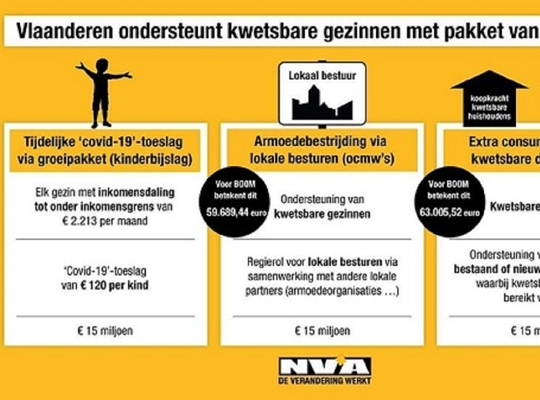 Met deze maatregelen wil de Vlaamse Regering zowel de koopkracht van kwetsbare gezinnen versterken alsook de lokale economie zuurstof geven.