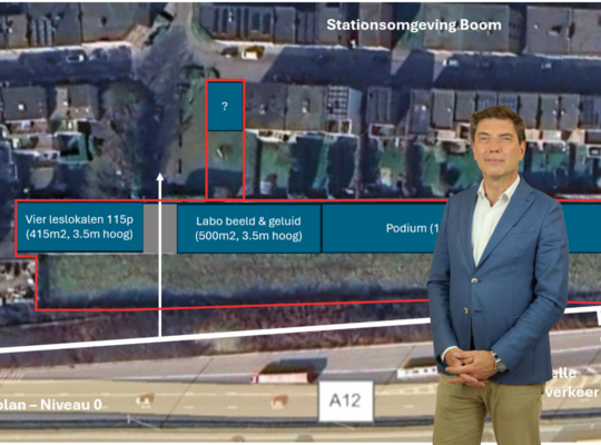 Met trots kondigt burgemeester Jeroen Baert (N-VA) de principiële goedkeuring aan voor de oprichting van een Internationaal Kenniscentrum en Praktijkcampus voor Podiumbouw op de Frateur-Site, aan de stationsbuurt van Boom.